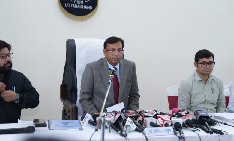 राज्य निर्वाचन आयुक्त सुशील कुमार ने शनिवार को राज्य निर्वाचन आयोग के सभाकक्ष में आयोजित प्रेस वार्ता में राज्य के 12 जनपदों (जनपद हरिद्वार को छोड़कर) में त्रिस्तरीय पंचायतों के सामान्य निर्वाचन को लेकर तय कार्यक्रम एवं आयोग की तैयारियों की जानकारी दी। इस मौके पर आयोग के सचिव राहुल कुमार गोयल और संयुक्त सचिव कमलेश मेहता भी उपस्थित रहे।